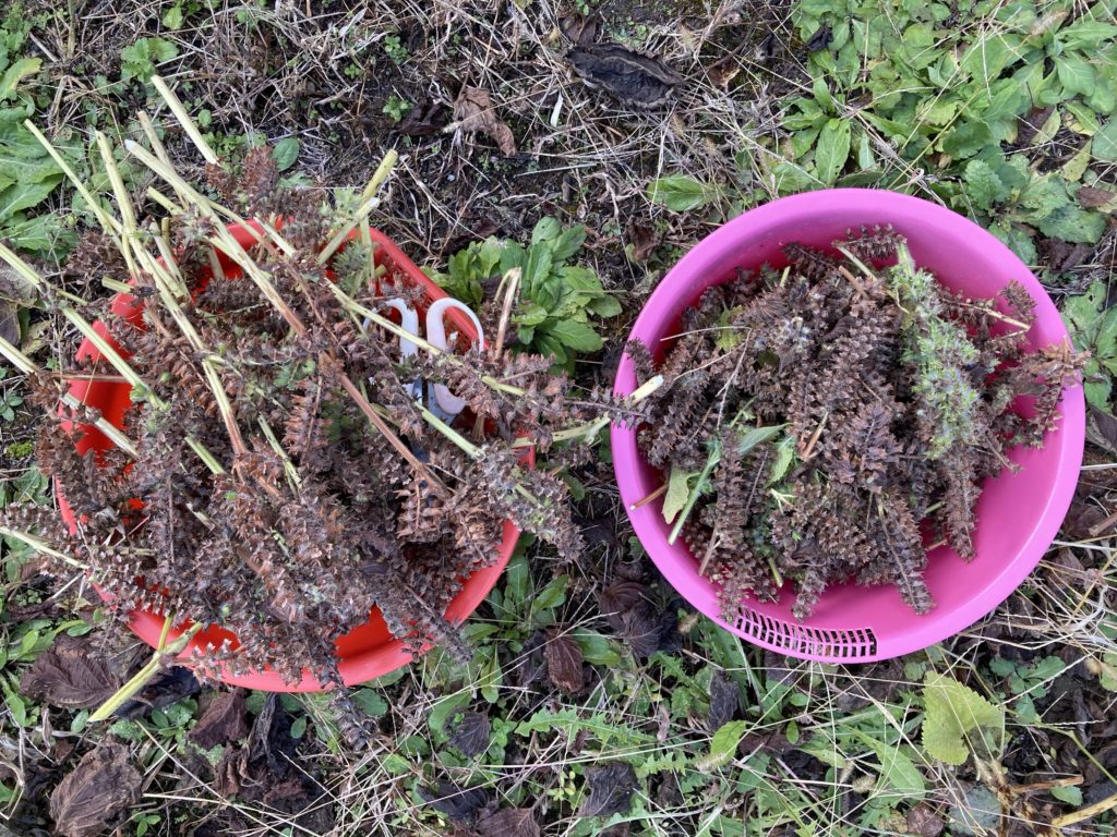 今日の畑[2021/11/21] Published 2021-11-21 実の日 晴れ 12℃/0℃ もう花が咲いてしまった高菜。 明日は雨。 今日のうちに、雨に濡れて欲しくないものを刈り取る。 えごまの刈り取り。 タアサイ ドライにする予定の、パセリとキャットニップ Read more posts about 今日の畑 or 未分類 今日の畑収穫実の日 Previous Post 今日の畑[2021/11/17]種をとる Next Post 今日の畑[2021/11/26]