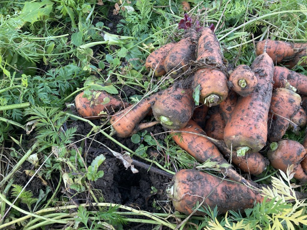今日の畑[2021/11/26] Published 2021-11-26 実の日 曇りのち晴れ 8℃/1℃ 人参も、やっと目いっぱい収穫できるように。 ルバーブの茎も、寒さできれいな赤紫に。 赤筋大根まだまだ元気なカーリーケールとカーボロネロ Read more posts about 今日の畑 今日の畑収穫固定種実の日 Previous Post 今日の畑[2021/11/21] Next Post 今日の畑[2021/11/27]大根収穫
