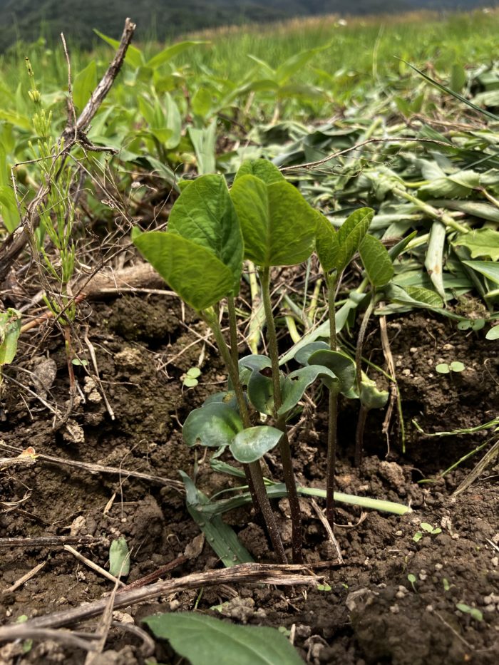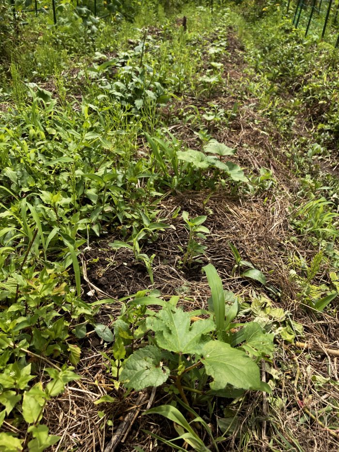 ああ、じゃがいもを植えた畝の空きに、うっかりケールを植えてしまっていた。